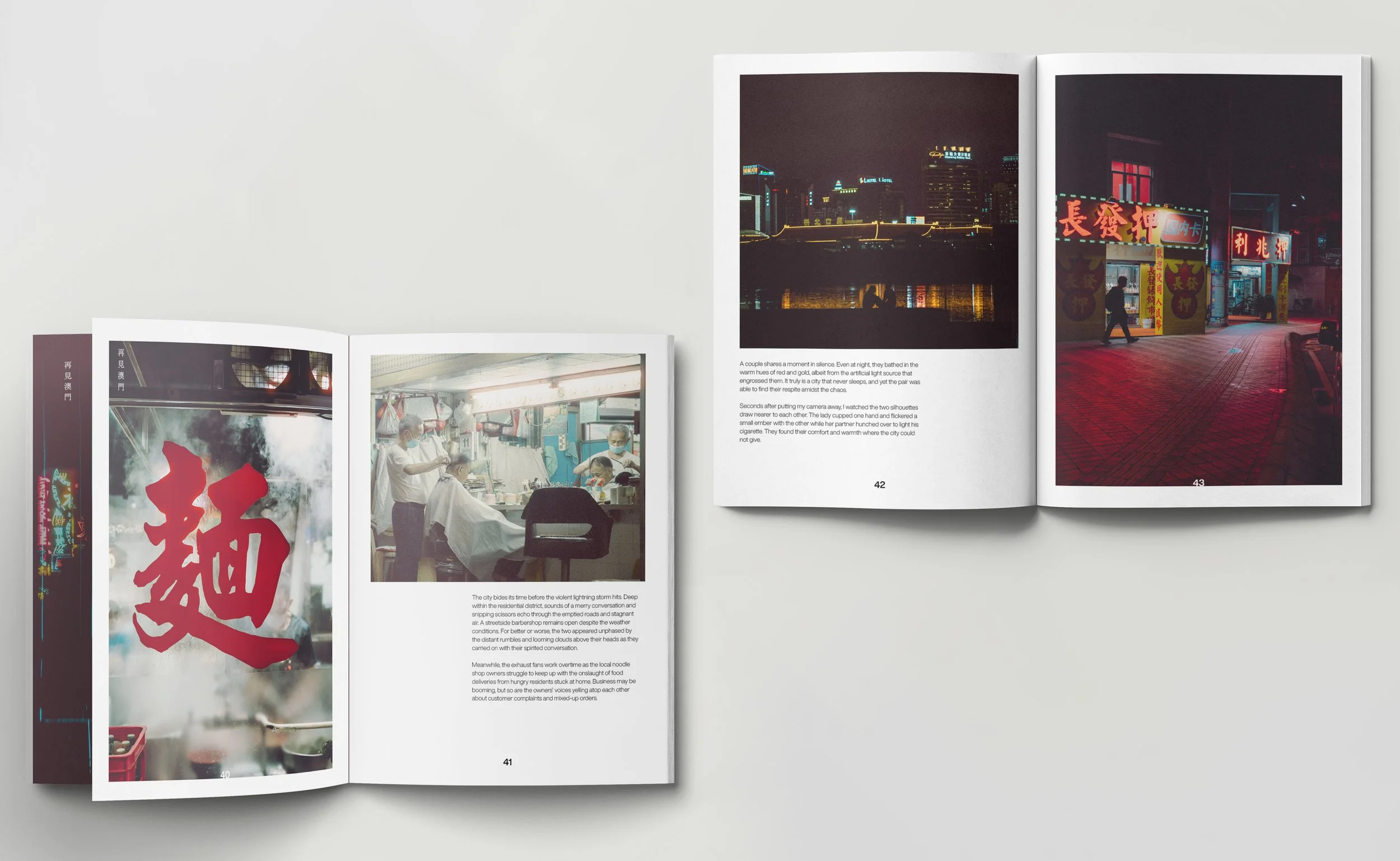 'Farewell, Macau' is a love letter- an ode- to the disappearing landscapes of Macau. An anthology of images, poems, and lyrics from various artists who have called the city their home. The compendium is imbued with a sonder tone- often harkening back to the artists' memories or stories of a particular time or place within the city. Farewell Macau invites the viewer to witness the artists' relationship with the 'home' and how the ever-changing region has influenced its inhabitants and their disposition with the city.