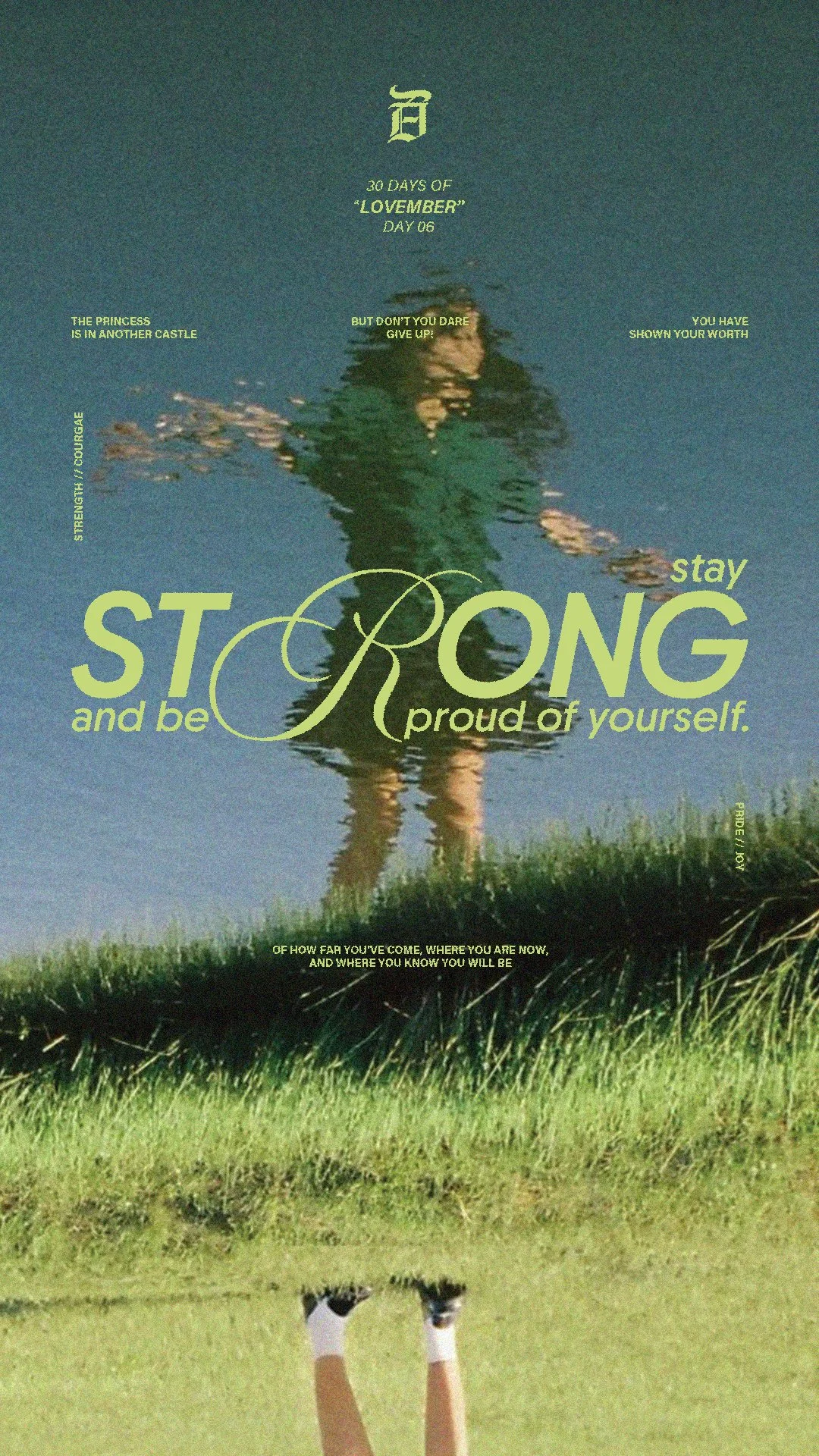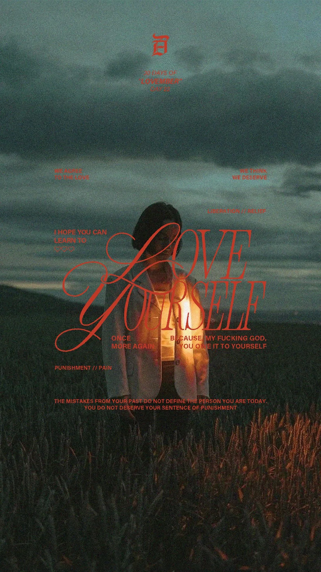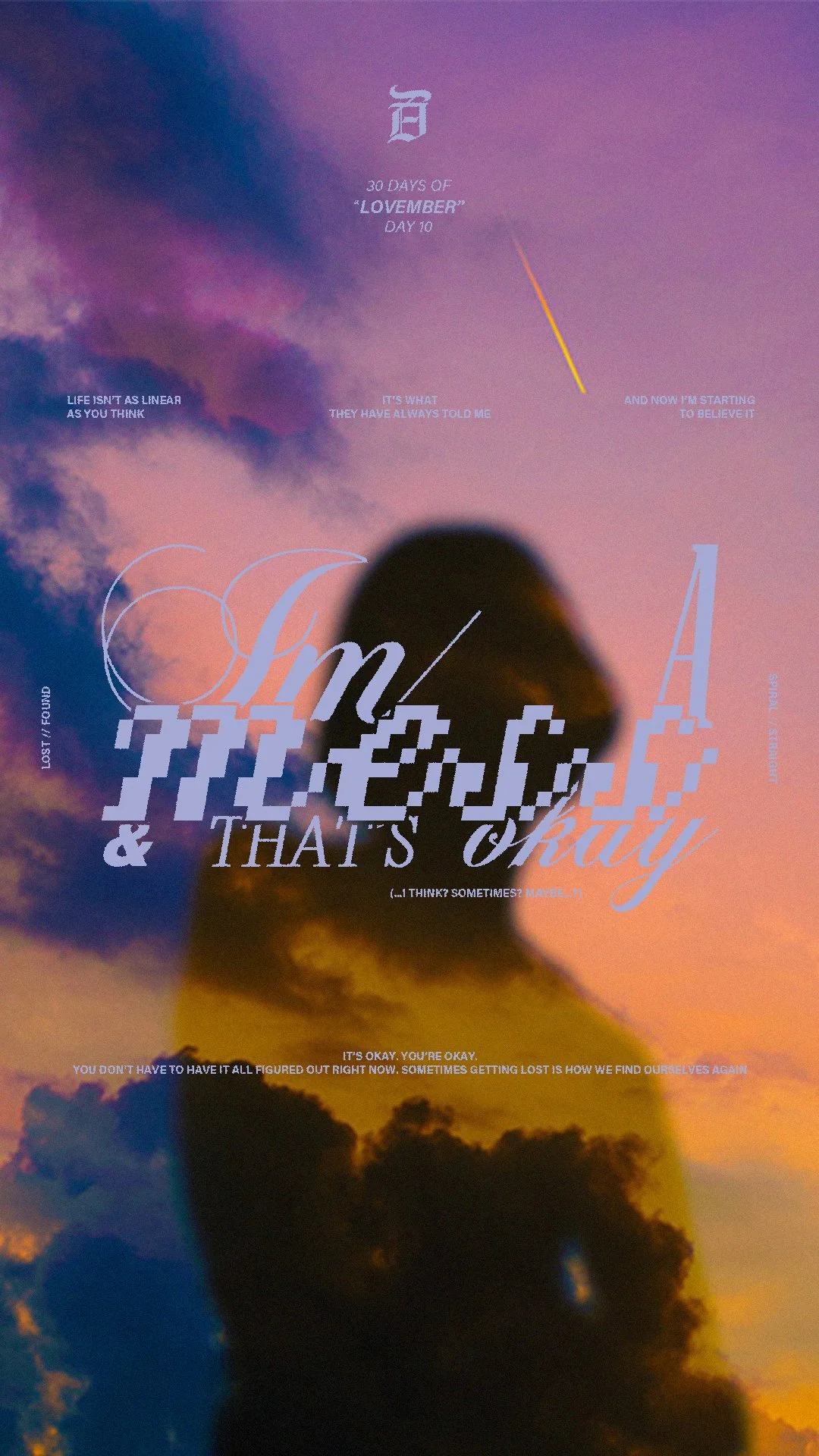 30 Days of Lovember is series of digital posters created daily throughout November; a passion project in response to the men’s mental health awareness month, acting as a means of expressing myself during a particularly tumultuous point of my life, and using it as a voice to give comfort to those navigating the same journey as I am.