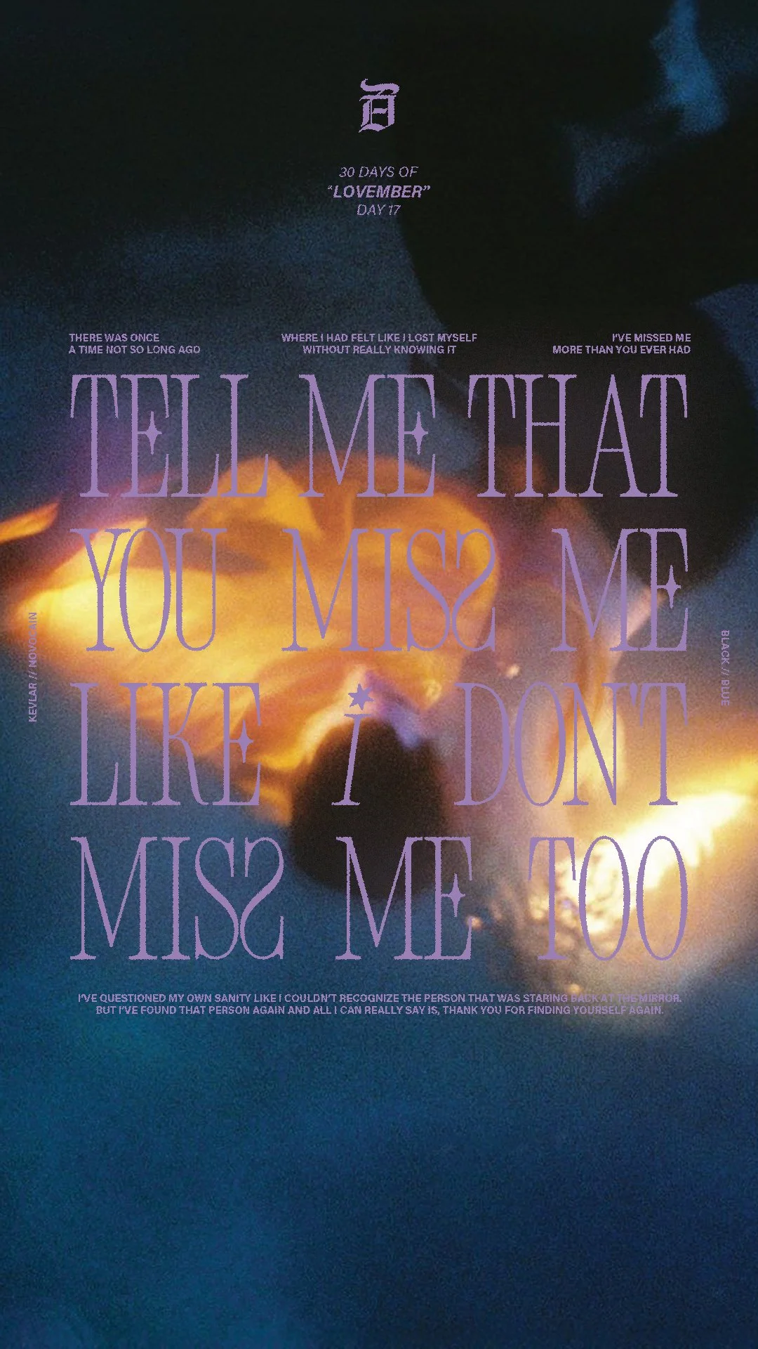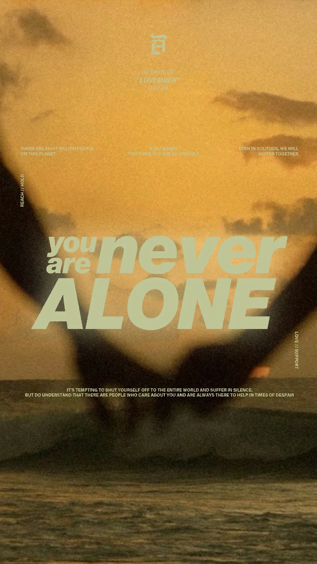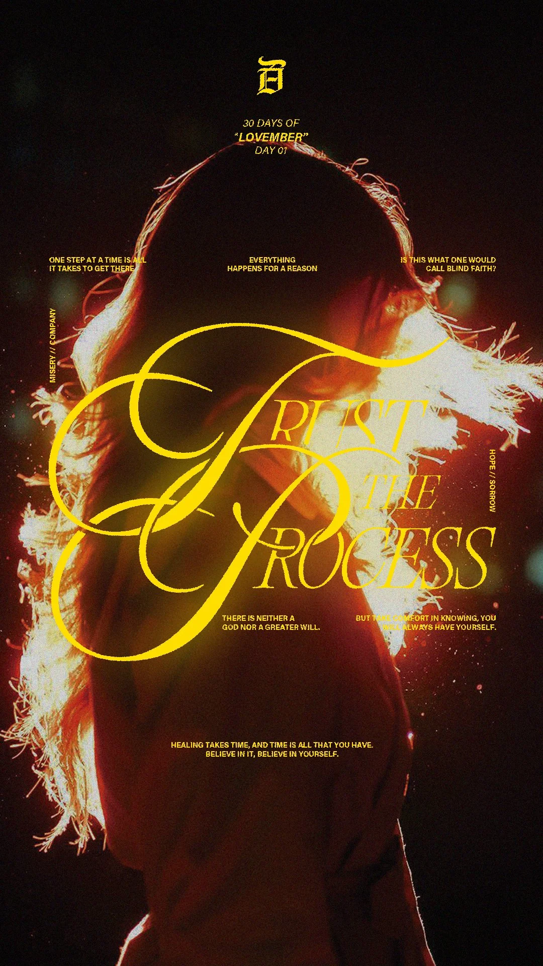30 Days of Lovember is series of digital posters created daily throughout November; a passion project in response to the men’s mental health awareness month, acting as a means of expressing myself during a particularly tumultuous point of my life, and using it as a voice to give comfort to those navigating the same journey as I am.